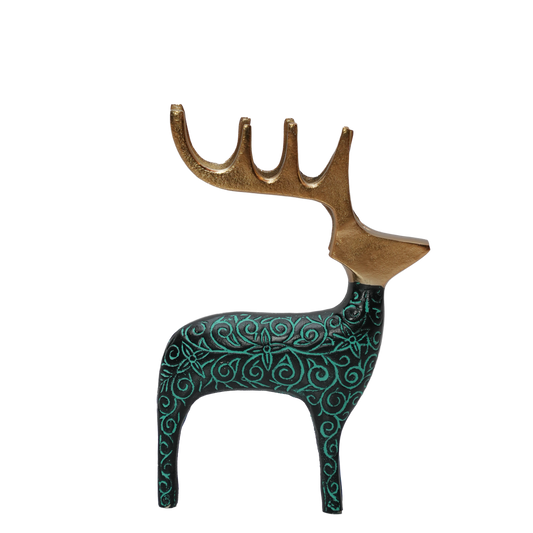 Black Green Reindeer Figurine Table Accent
